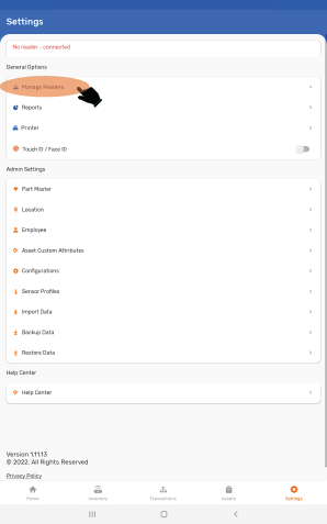 12. Once you press on the reader's name, then the application will start making a connection with that skID device.