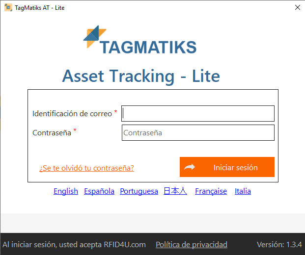 TagMatiks AT Lite Application comes with the default language, English. As of this article, we are also supporting Spanish, Portugal, and Japanese. New languages will continue to be added. On the login screen of TagMatiks AT Lite, you may choose the language of your choice.