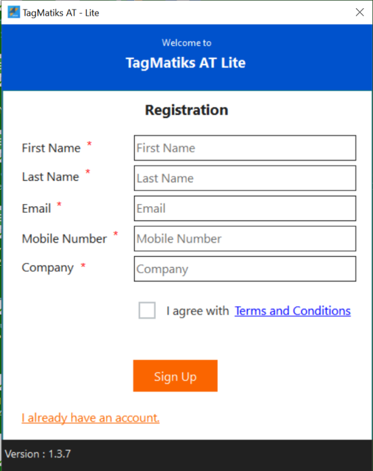 Once you set your password, you can login into TagMatiks AT Lite using these credentials.