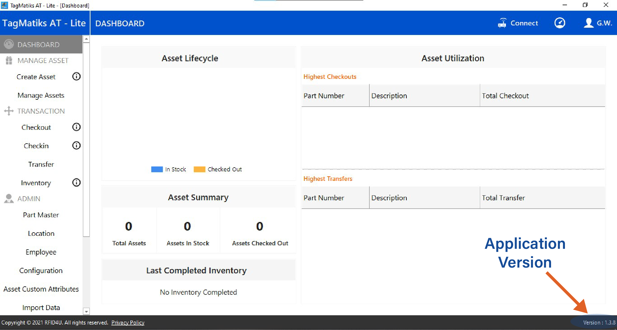 The version of TagMatiks AT Lite will be visible on each screen at “bottom – extreme right” position, as highlighted in above image.