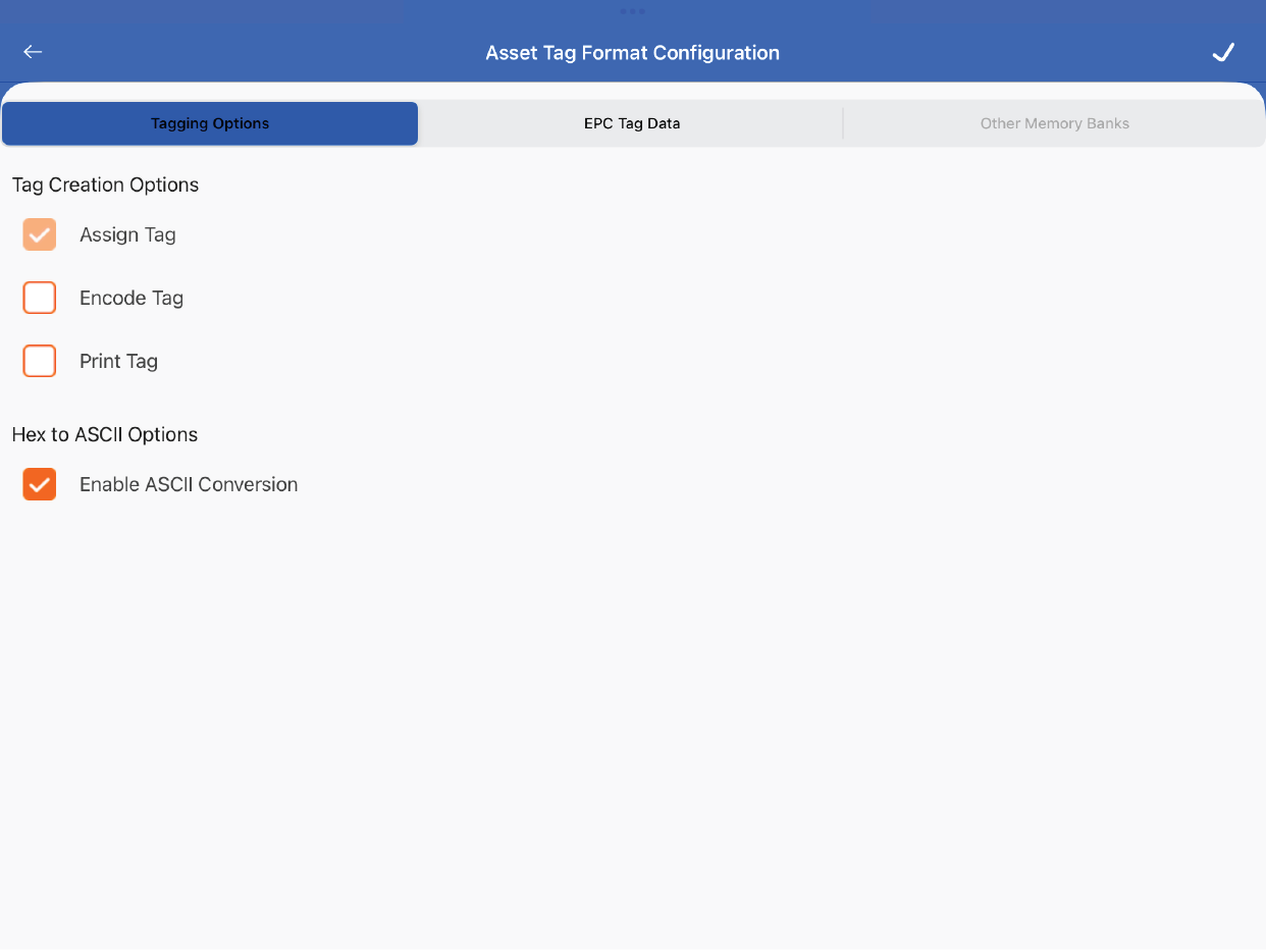 5. Please enable this feature to have the Asset Tag IDs in ASCII as well.
