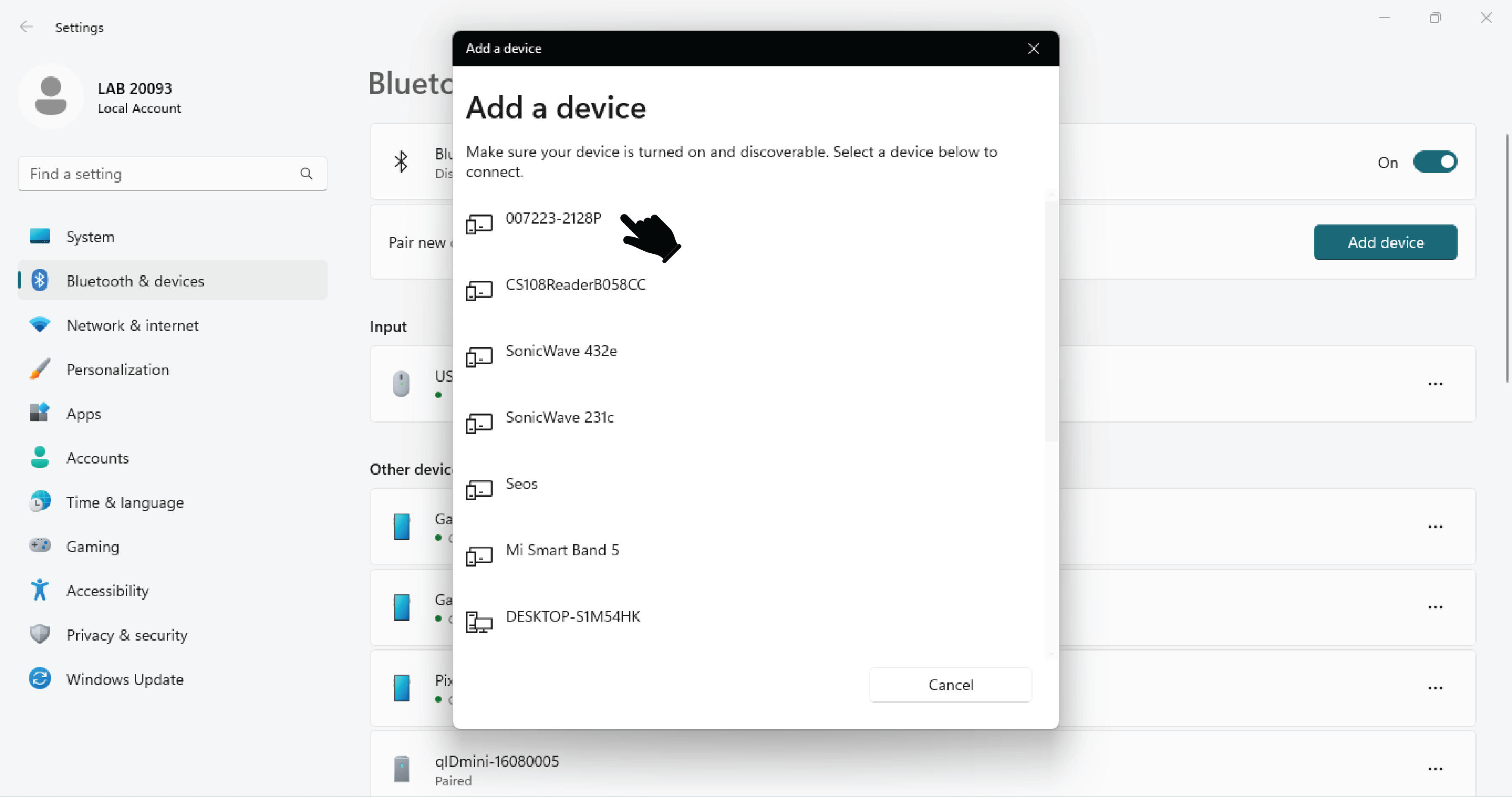 1. Turn on the Bluetooth of the PC. Go to Bluetooth & Devices and click on Add Device as shown in the image below.