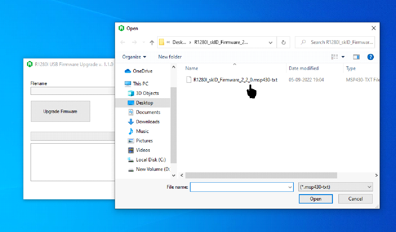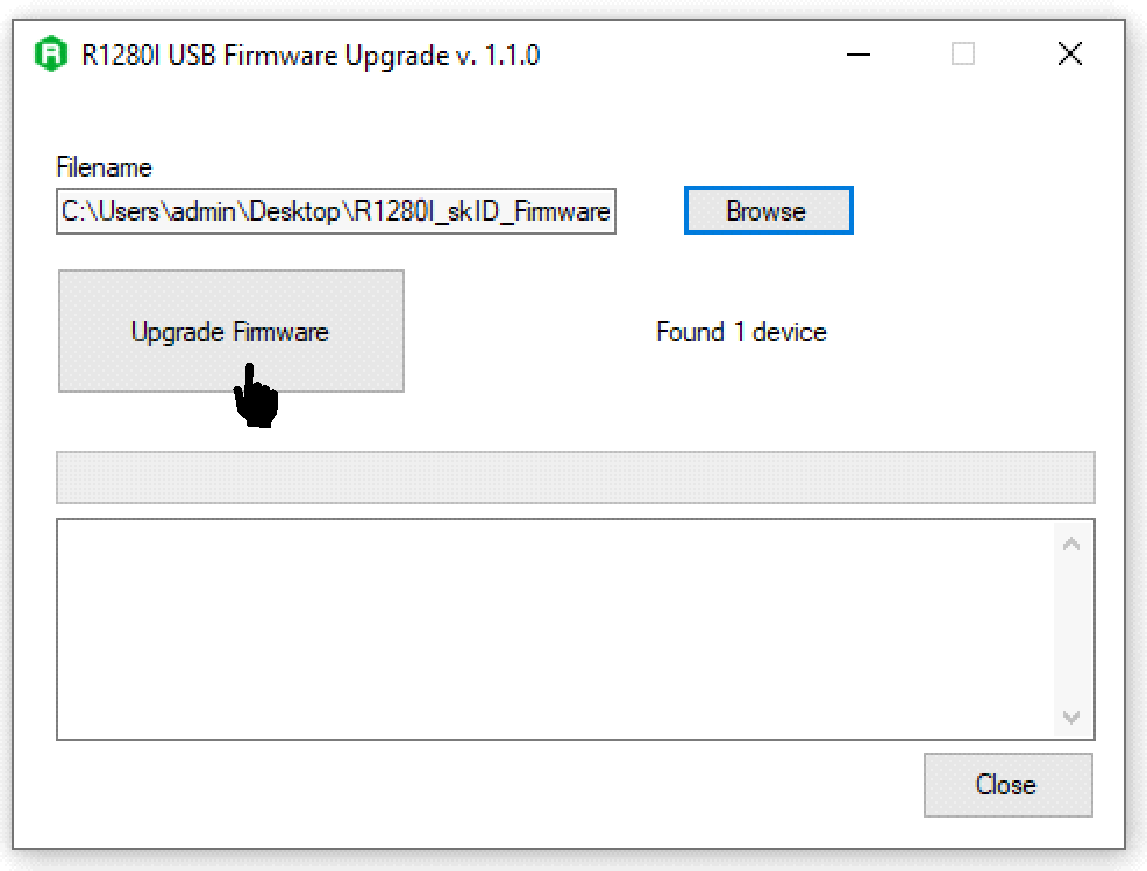 10. Power off the reader, disconnect the USB cable and then power on the reader again: the reader is ready for normal operation.