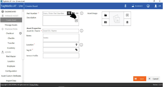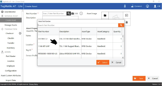 5. Once you select the part, the description and Asset ID will automatically populate, you can also enter the Asset ID manually.