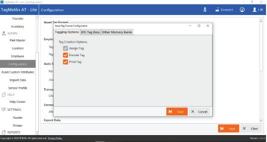 15. Other options for associating RFID tags are to use the Encode Tag and Print Tag Options. To use these, you must enable them under the Configuration -> Asset Tag Format Configuration tab as shown in image below.