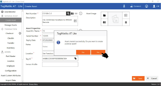 Creating assets is the first major step to start using RFID for asset tracking. The intent of creating an asset is to not only populate details about an asset but also associate an RFID tag / label to that asset so it can be used in transactions.