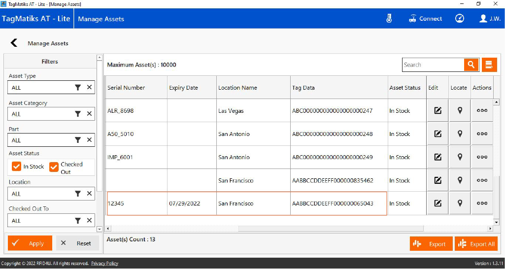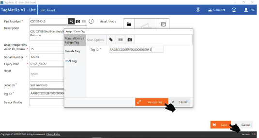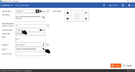6. Assign the RFID tag if you want to change the Tag ID and click on the “Save” button to save the changes.