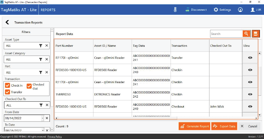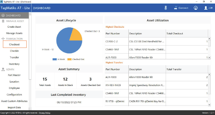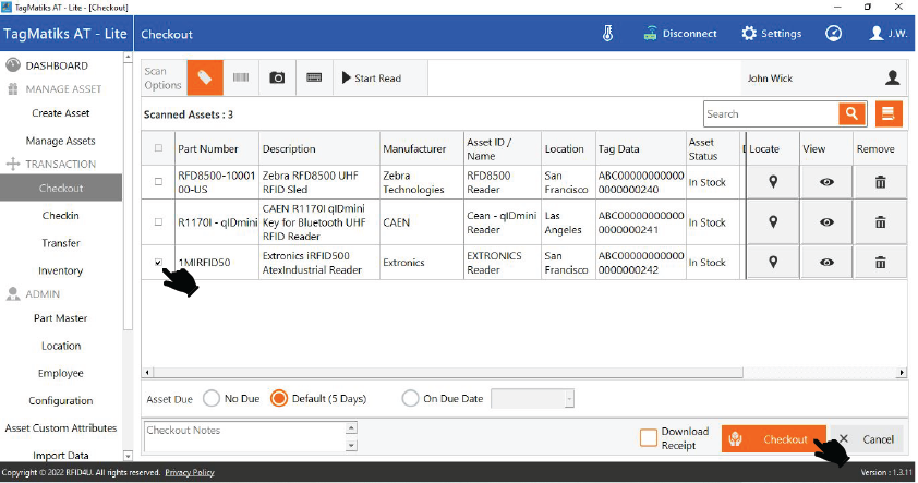 To help keep track of assets during their lifecycle, TagMatiks AT Lite includes various out of the box workflows that use RFID to automate the collection of data. These workflows include checkout, check-in and transfers.