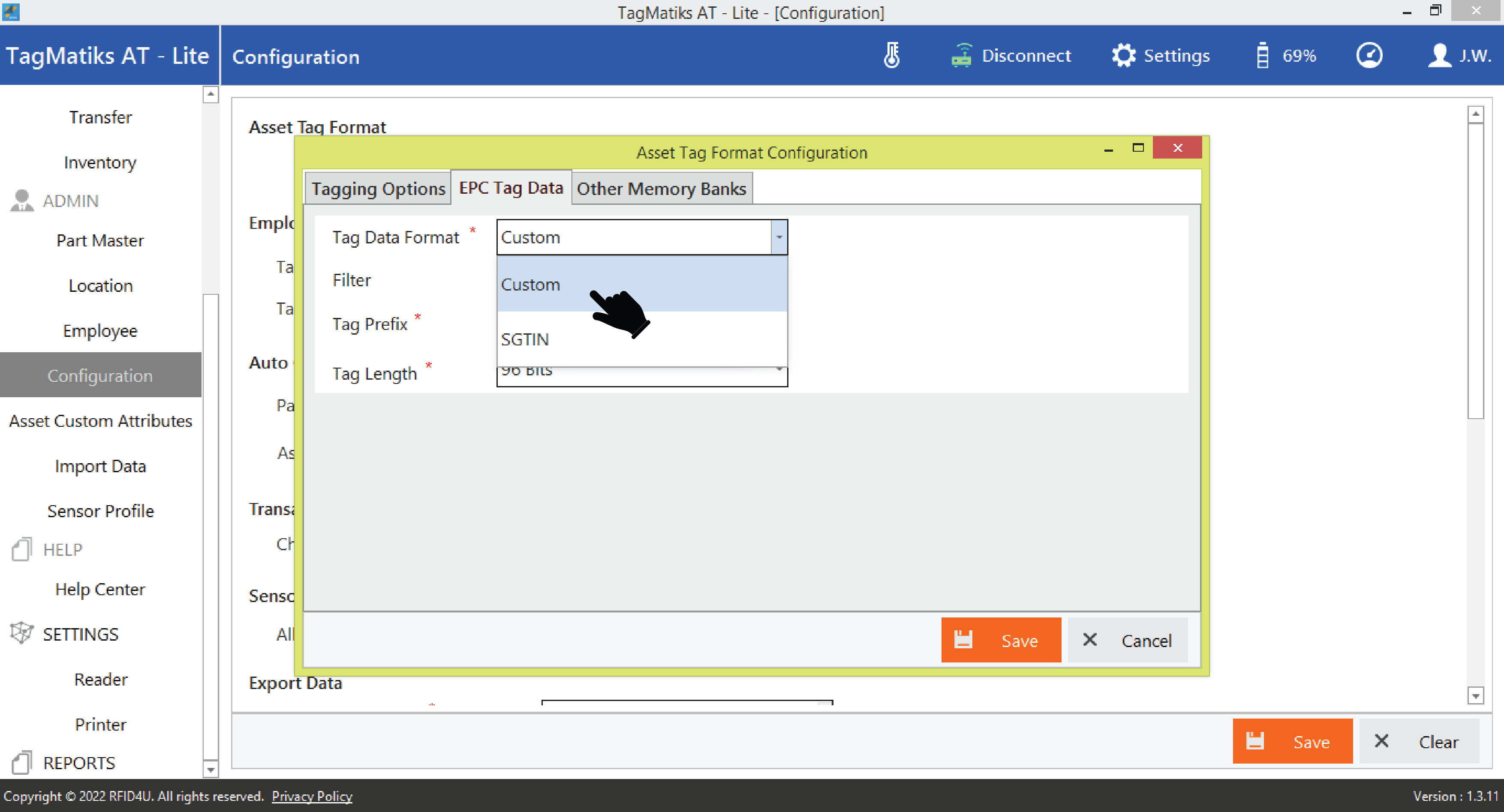 3. The asset tag format configurations allow users to modify the behaviour of associating RFID tags to assets.