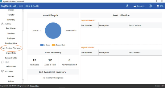 2. Click on the “Asset Custom Attributes” button from the left hand side of the application.