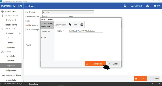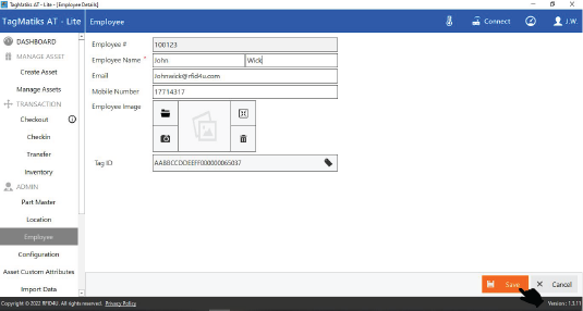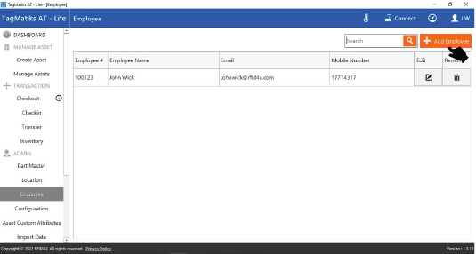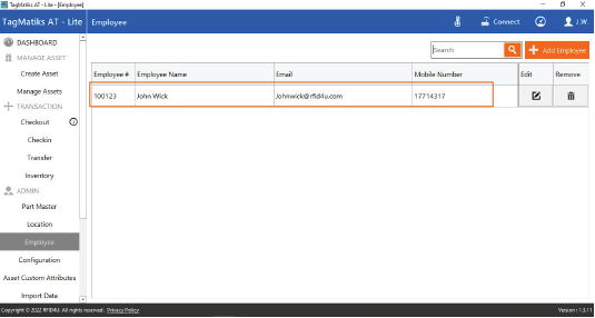 This article covers the functionality of the Employee module. Employees can be added to TagMatiks AT Lite for transactions like Checkout / Checkin workflows. When checking out an asset, an employee is selected and is associated with that employee until that asset is checked back in.
