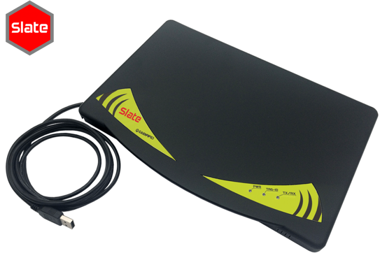 The Slate Reader is powered and controlled directly by a USB cable, thus allowing to read EPC Class 1 Gen 2 UHF RFID tags in an easy desktop environment in Windows® 7 or a Windows® 10 operating system.