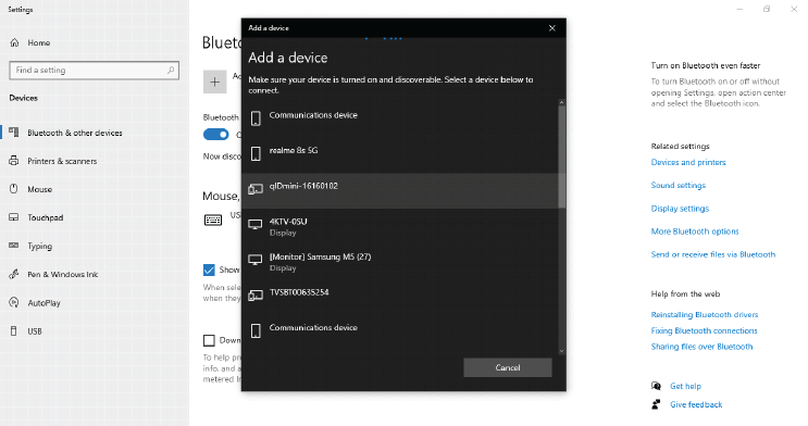 2. Another window will open to add a device. Select “Bluetooth” from this window. Then all the Bluetooth devices in range will be displayed.