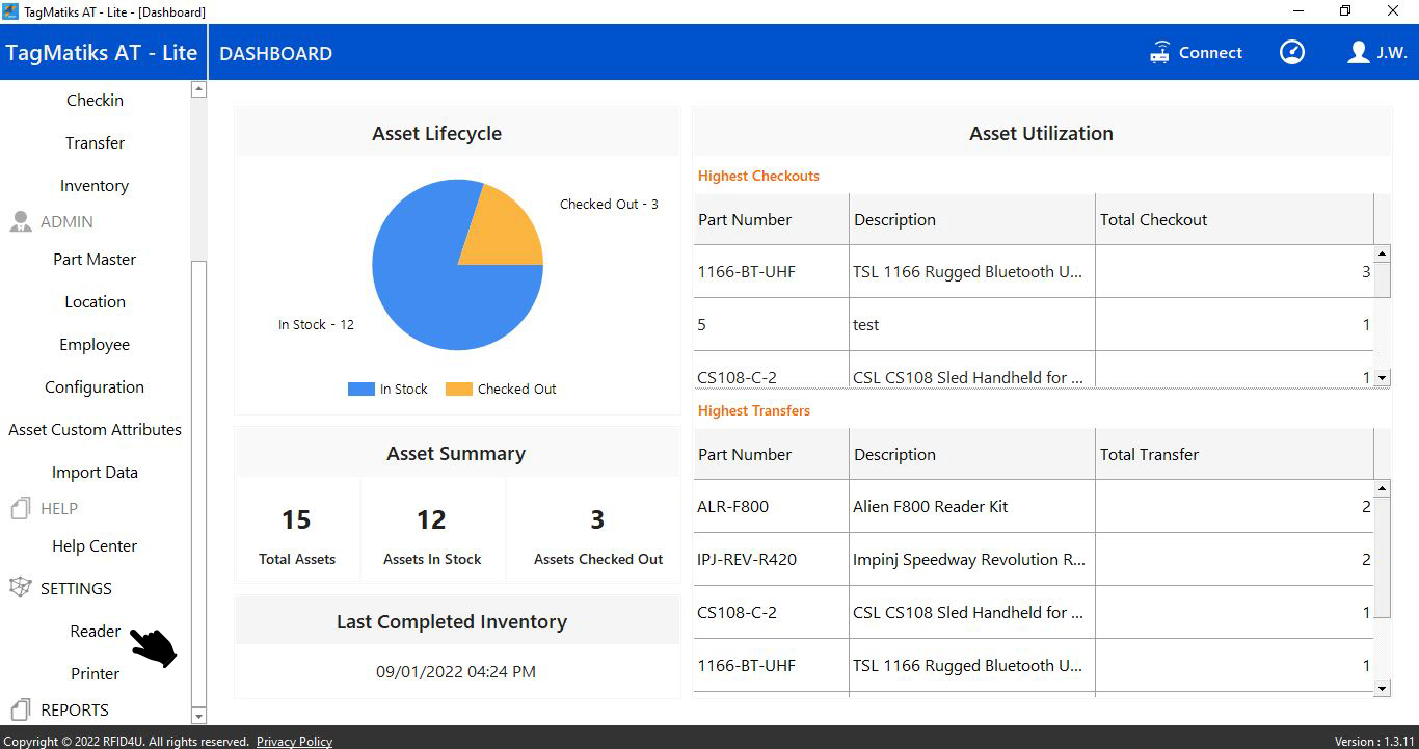 10. Reader details will appear with the Firmware version as shown in image below.
