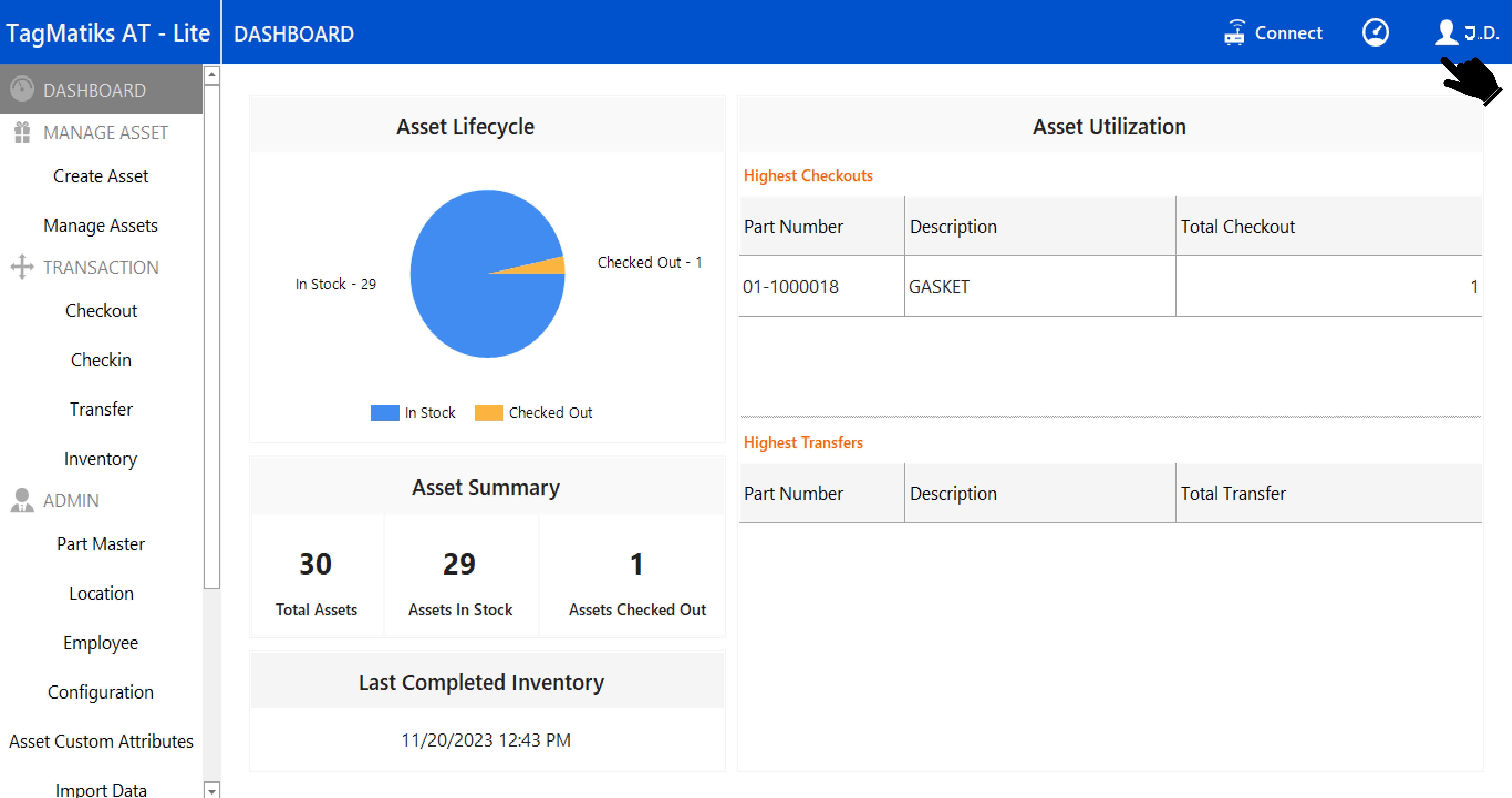 A. After successfully login into TagMatiks AT Lite Windows, you should see the dashboard as illustrated in the picture below.