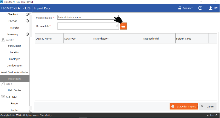 12. All the header fields should be mapped with their respective fields before clicking on the “Stage for Import” button.