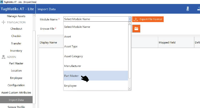 It should be noted that TagMatiks AT Lite supports .XLSX formats for uploading the asset details and only files in these formats will be imported without error.