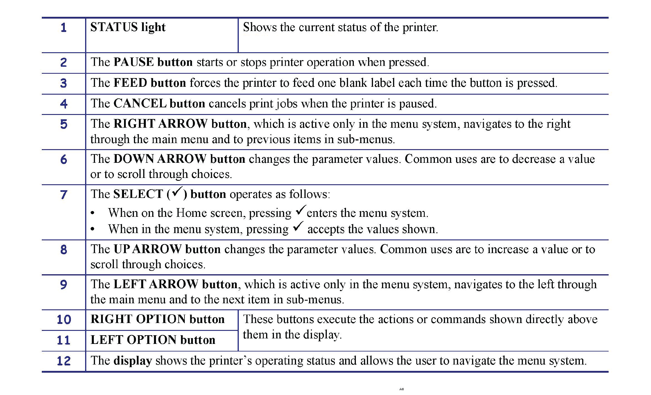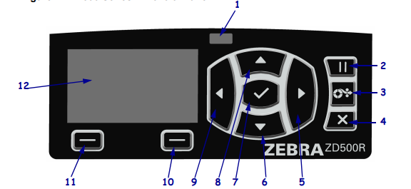 The control panel indicates the printer’s operating status and allows the user to control basic printer operation.