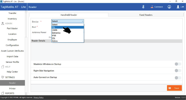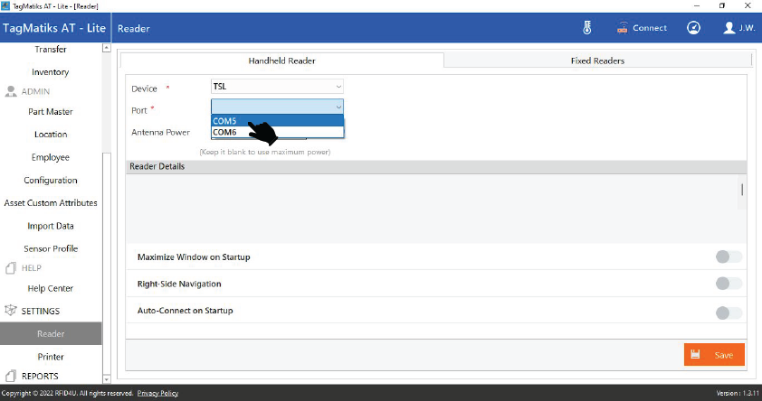 II. On TagMatiks AT Lite Application: TSL 2128 Reader check: