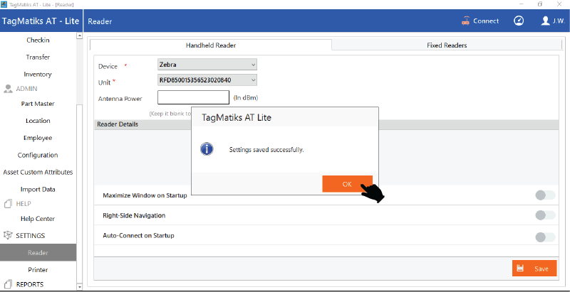 6. Click on the “Save” button from the bottom right-hand side of application to save the reader.
